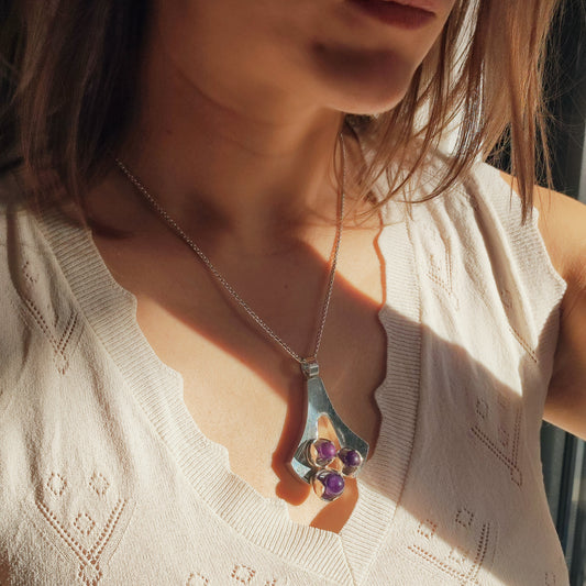 Vintage Modernist Silver Necklace with Amethyst by Niels Erik From