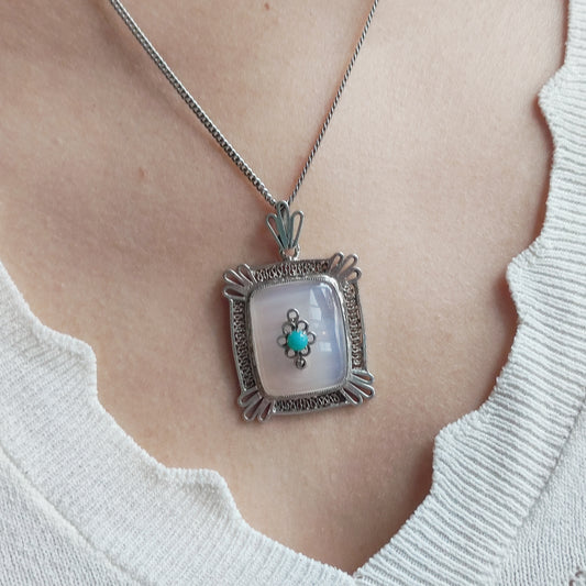 Vintage Dutch silver banded agate pendant 1920s–1930s