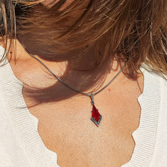 Art Deco Drop Pendant with Spinel in 14K