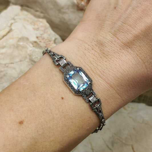 Art Deco Bracelet with Blue Glass