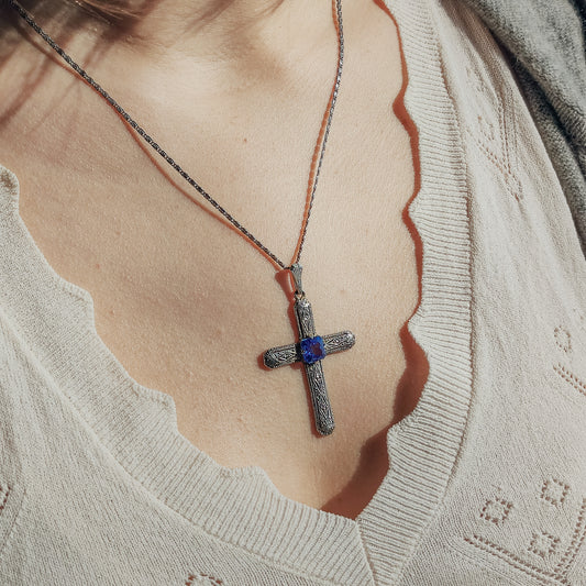 Art Deco Cross Pendant with Blue Spinel