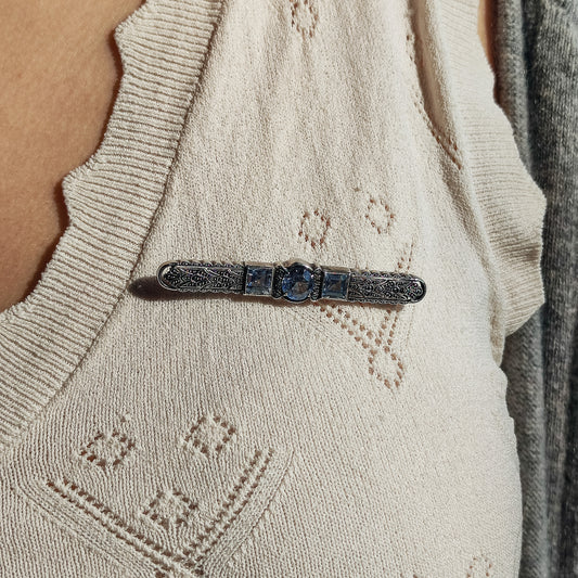 Art Deco Brooch with 3 Light Blue Spinels