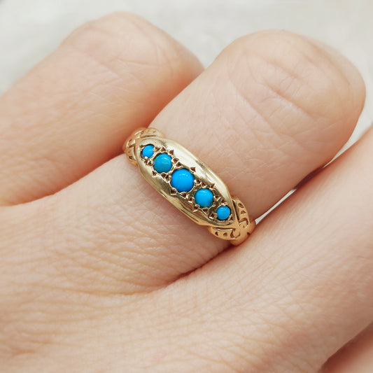 Antique Turquoise Five Stone Ring in 18K Gold Birmingham 1912