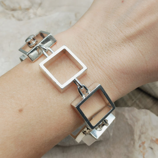 Heavy Iconic Vintage Silver Squares Bracelet by Hans Hansen