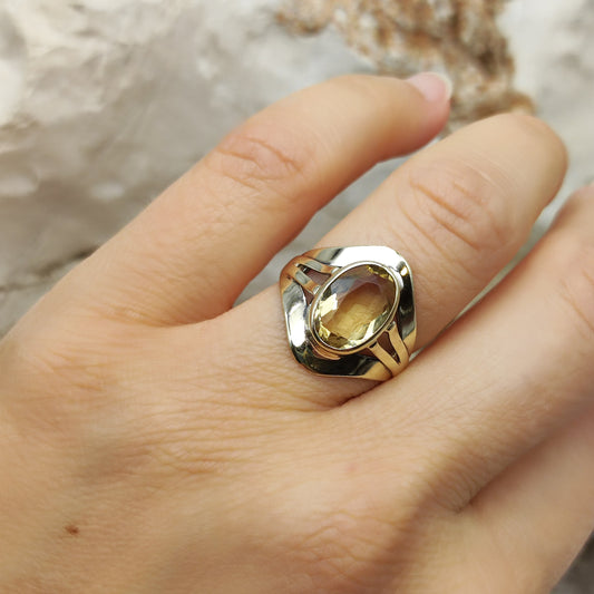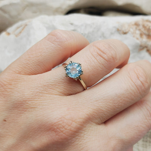 Vintage diamond and London Blue Topaz wishbone ring in 18K gold