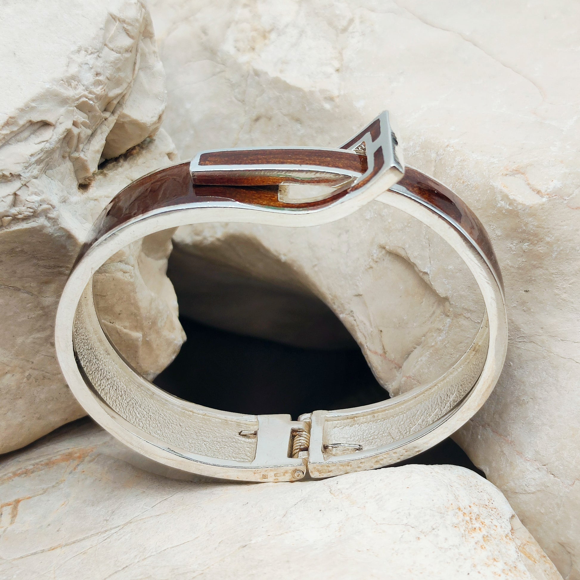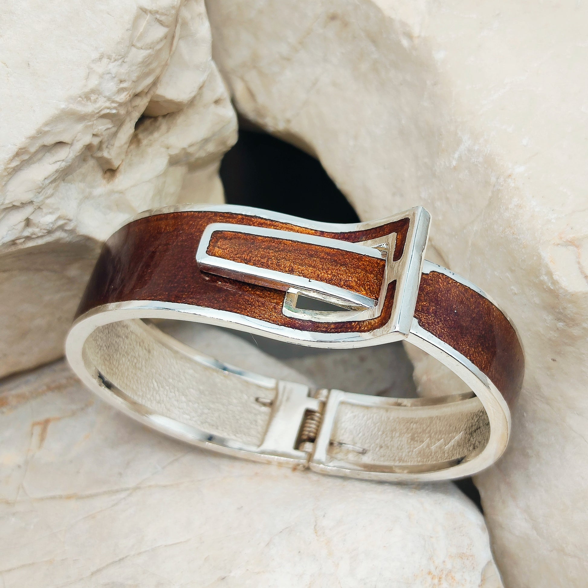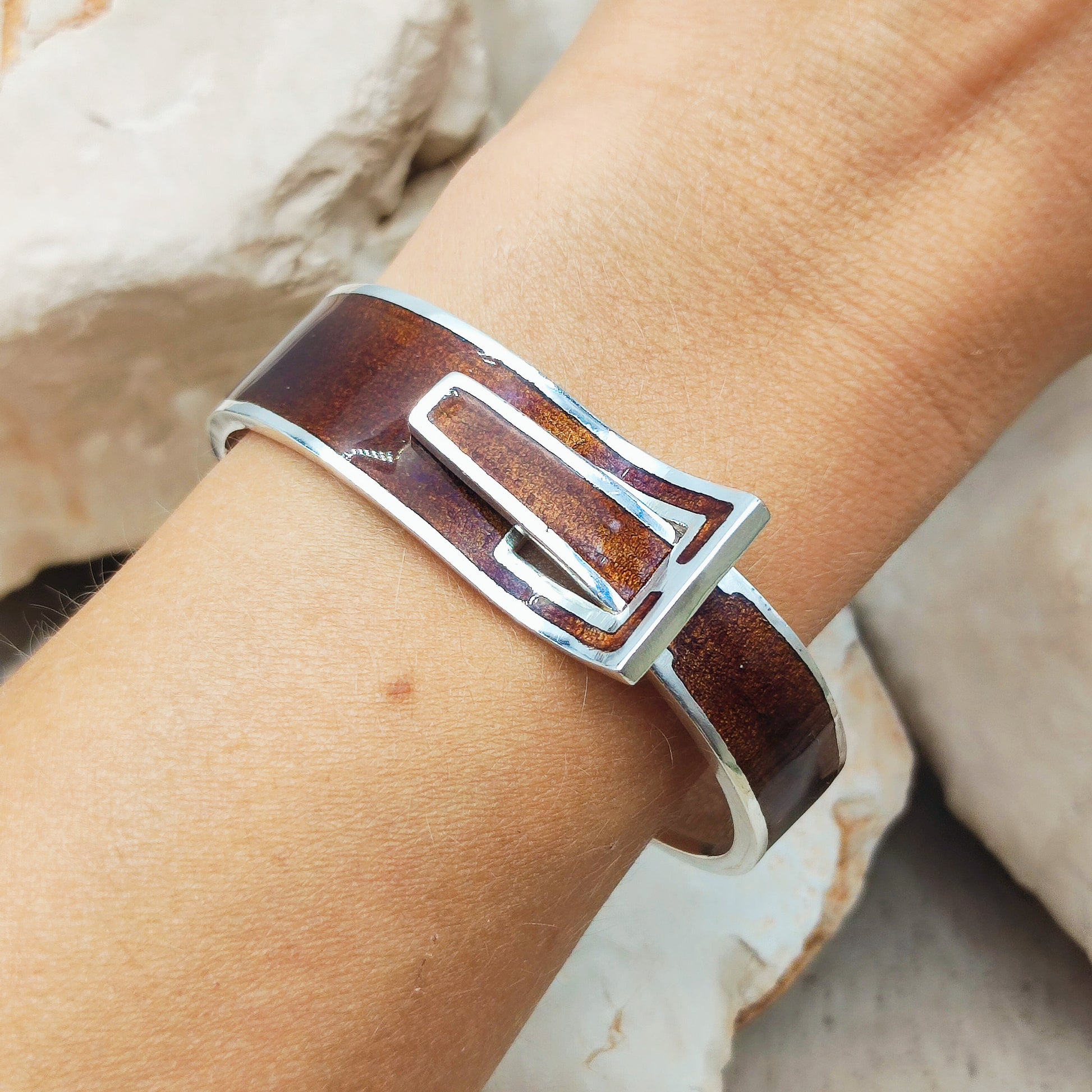 De armband is heel mooi afgewerkt met bruin email enkel de randen zijn zilver gelaten.  Het email is in een uitzonderlijk goede staat en heeft geen chips.