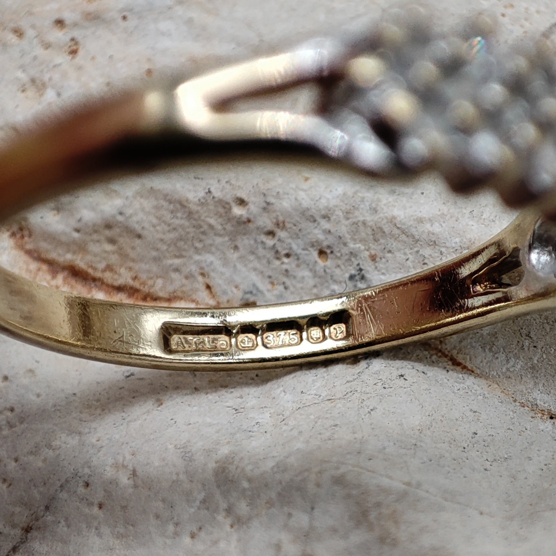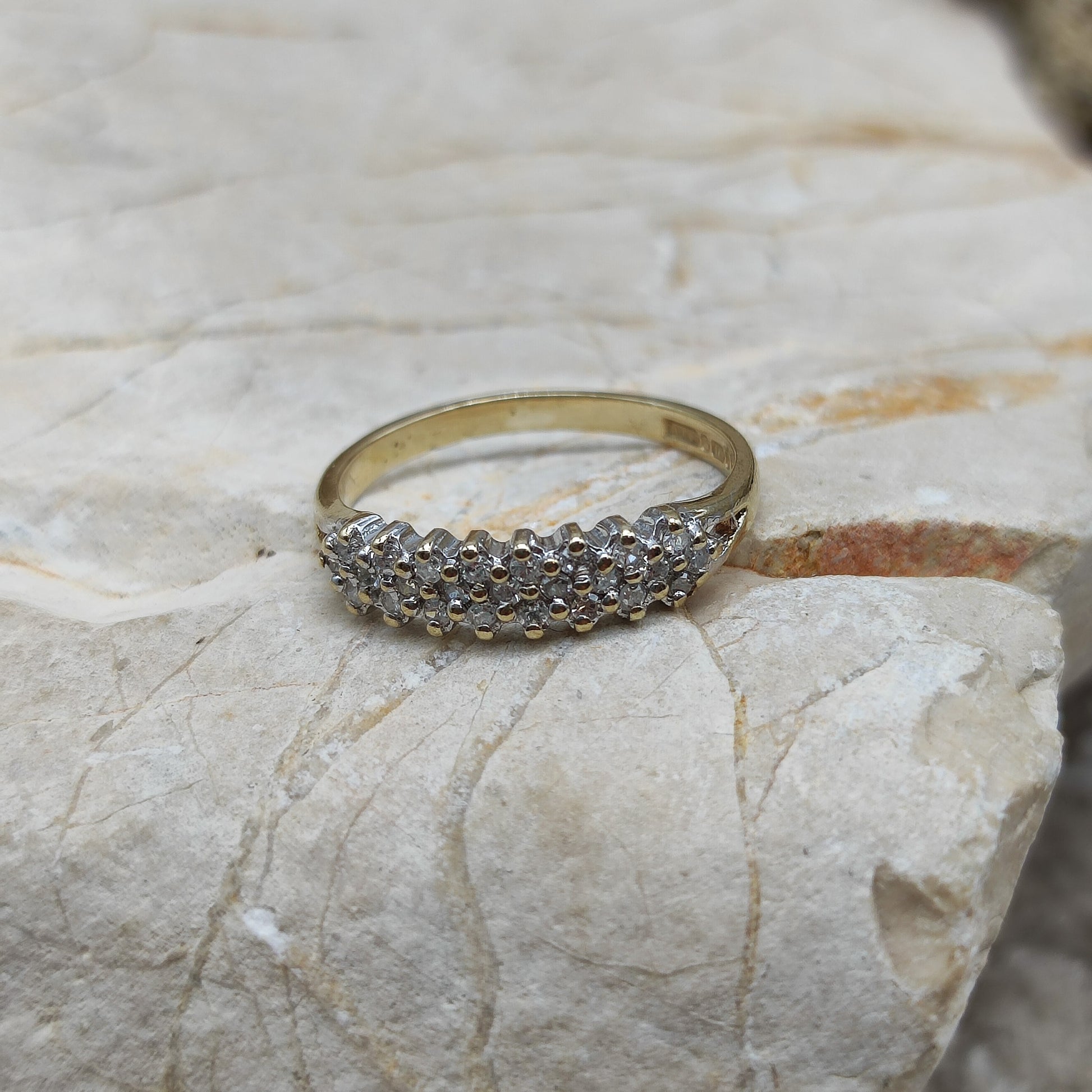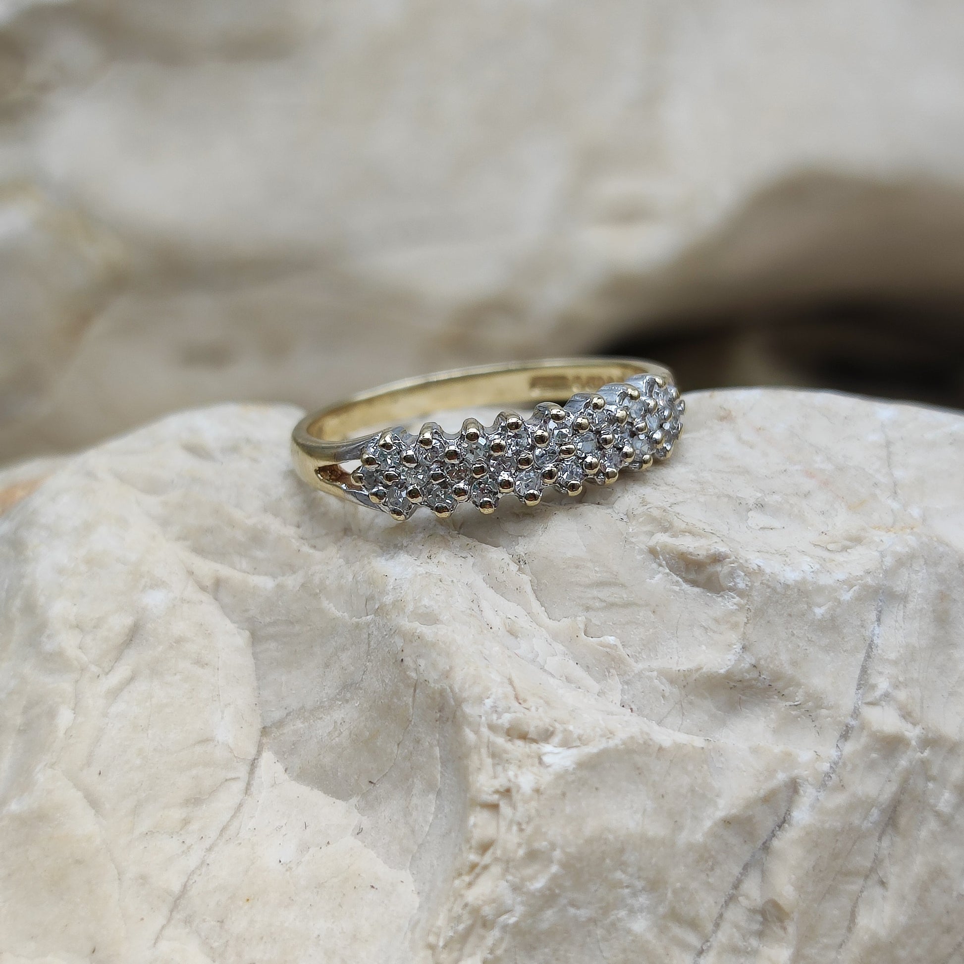 Prachtige rijring met diamantjes in 9 Karaat goud.