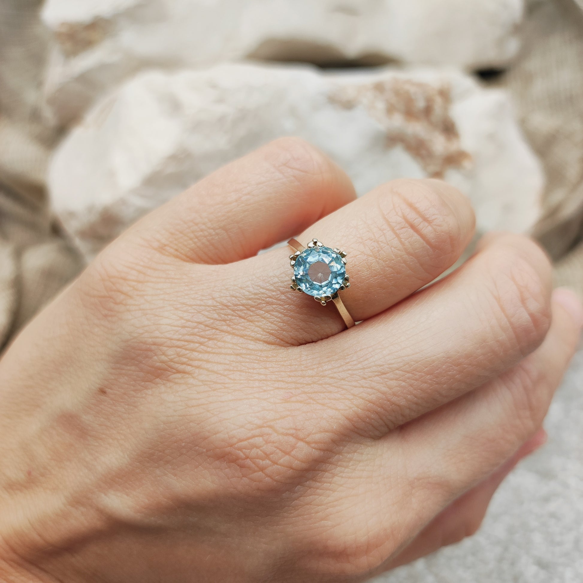 Vintage pale blue ring in 8K gold