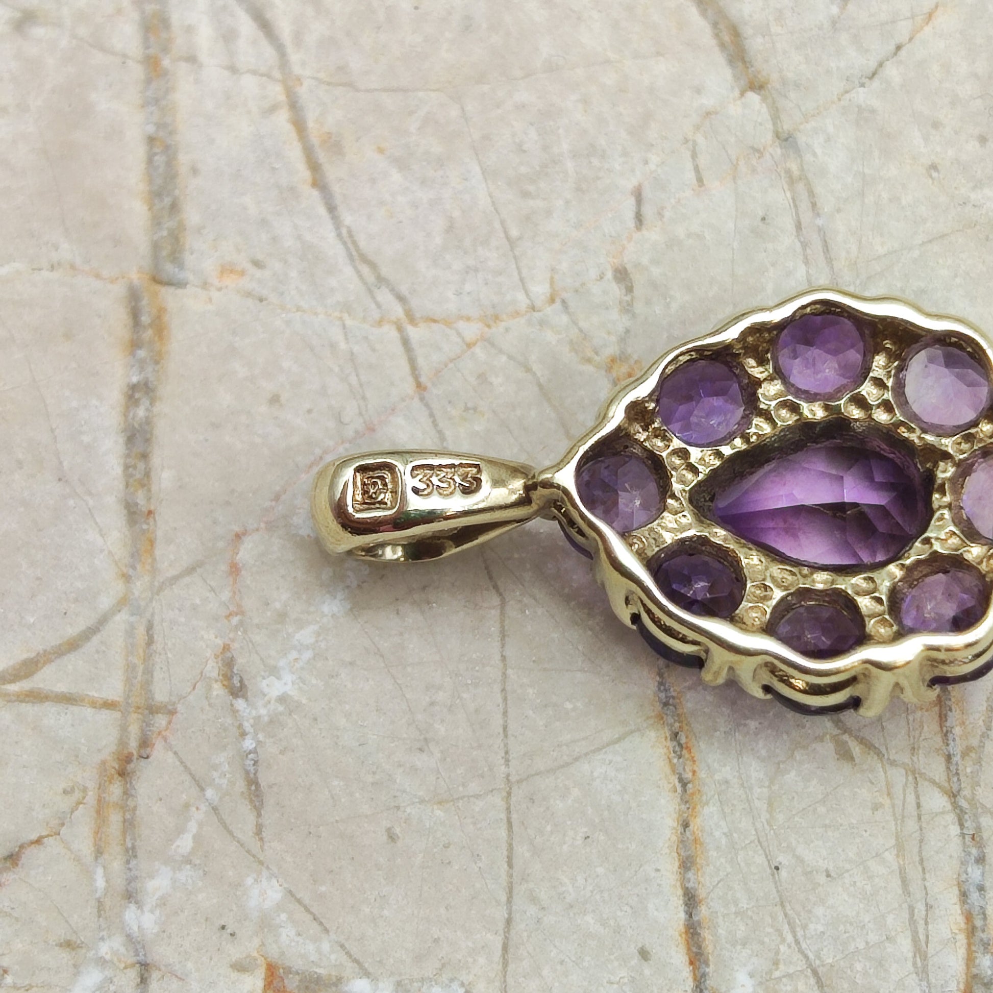 Deze hanger is volledig bezet met Amethisten.  De hanger is aan 1 stuk gemaakt en heeft in het midden een Amethist druppel, omgeven door ronde Amethisten.