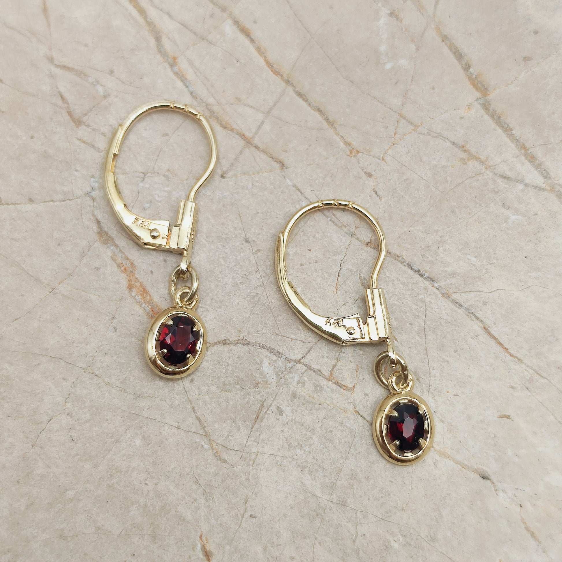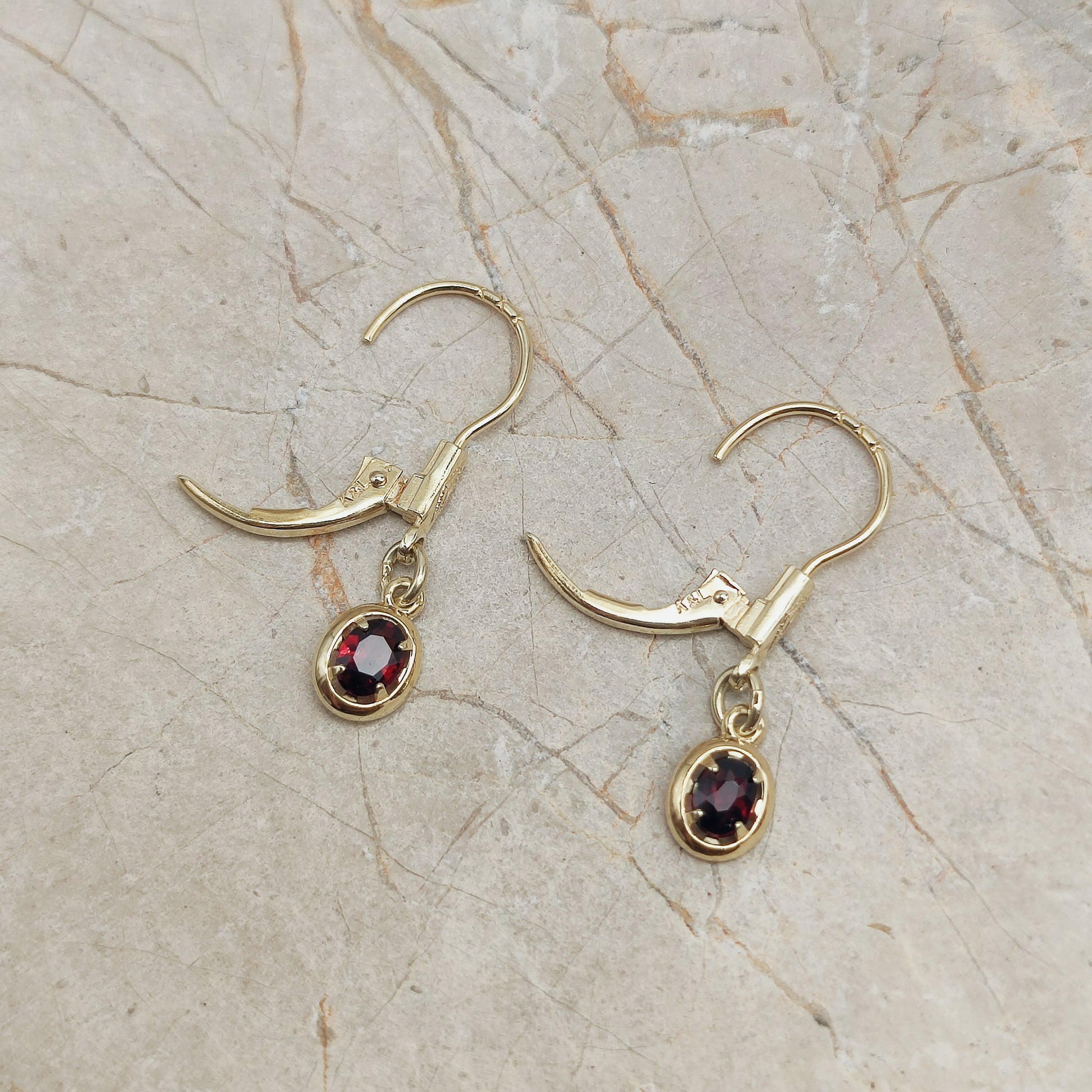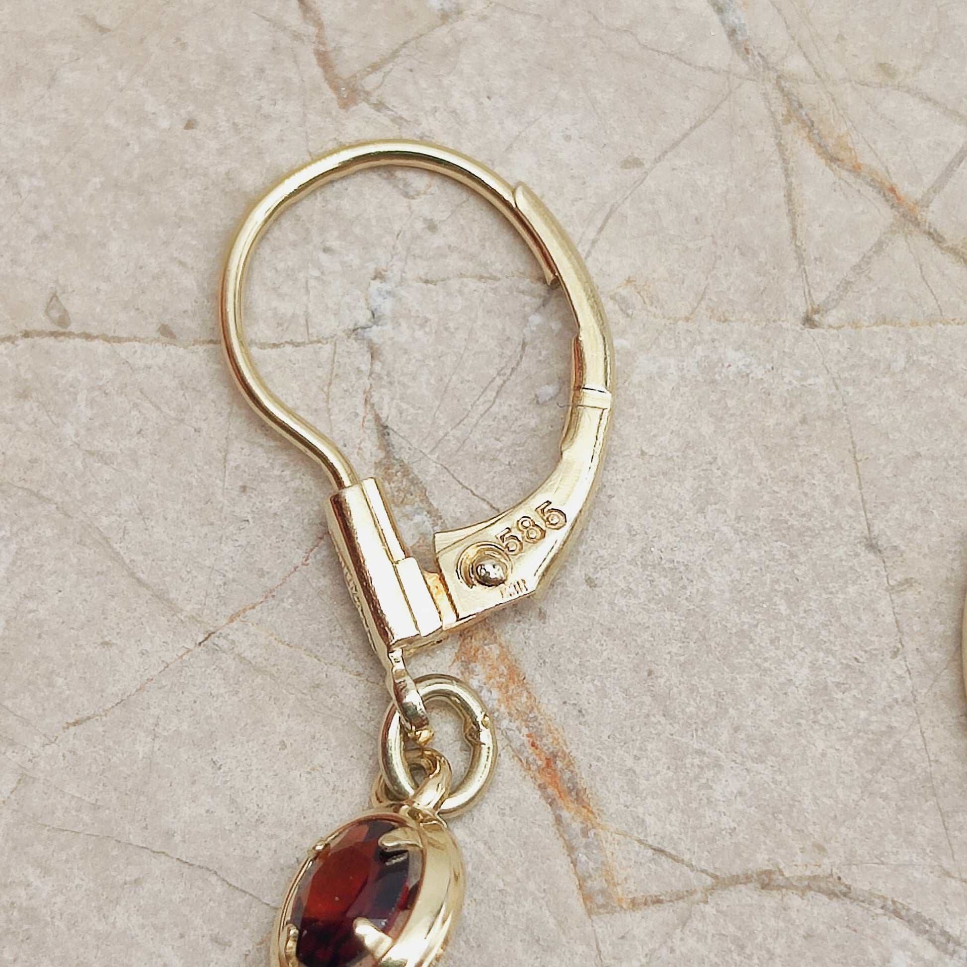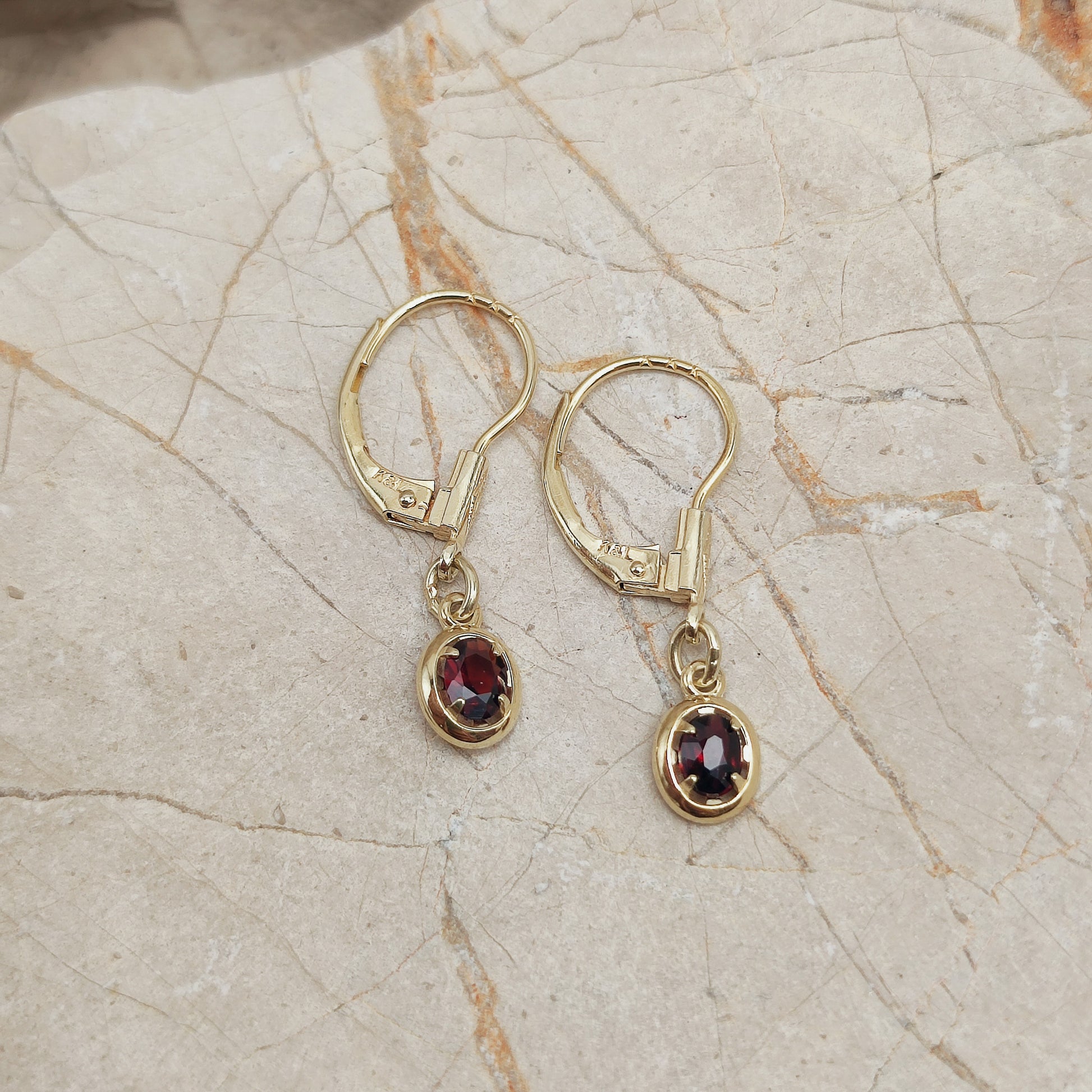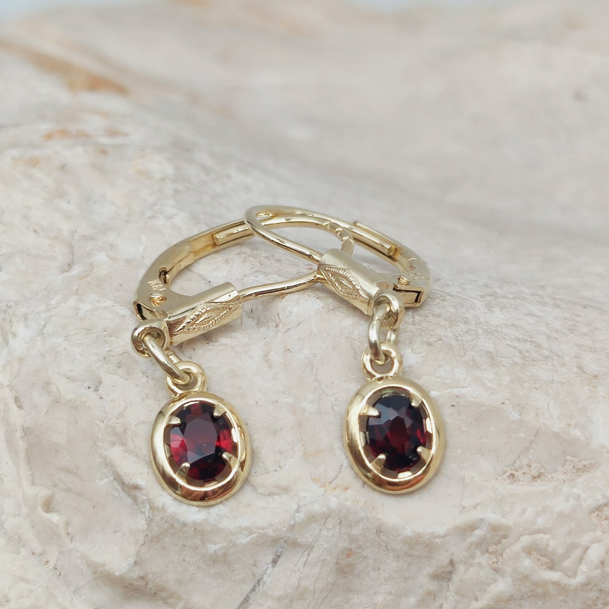 De bovenkant van de oorbellen is zeer fijn versierd met een ruitje en daaronder een hangertje met een Granaatje.