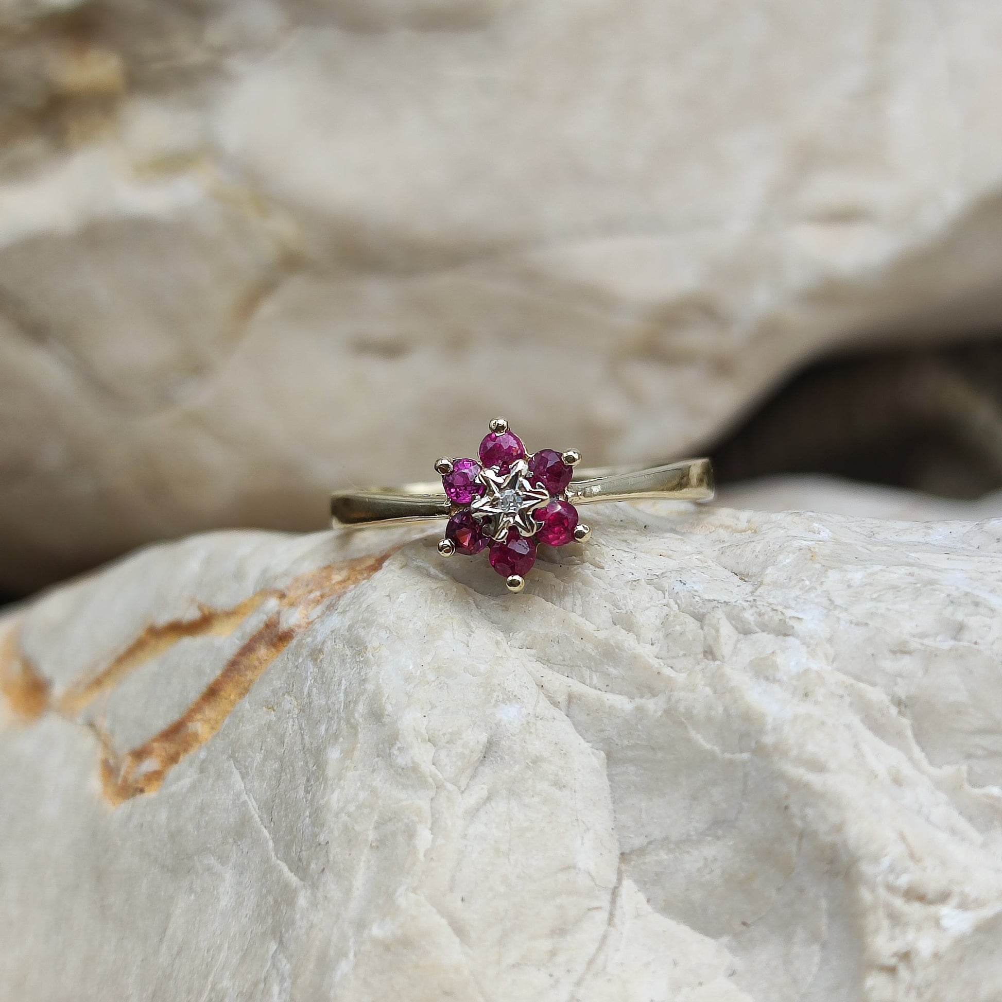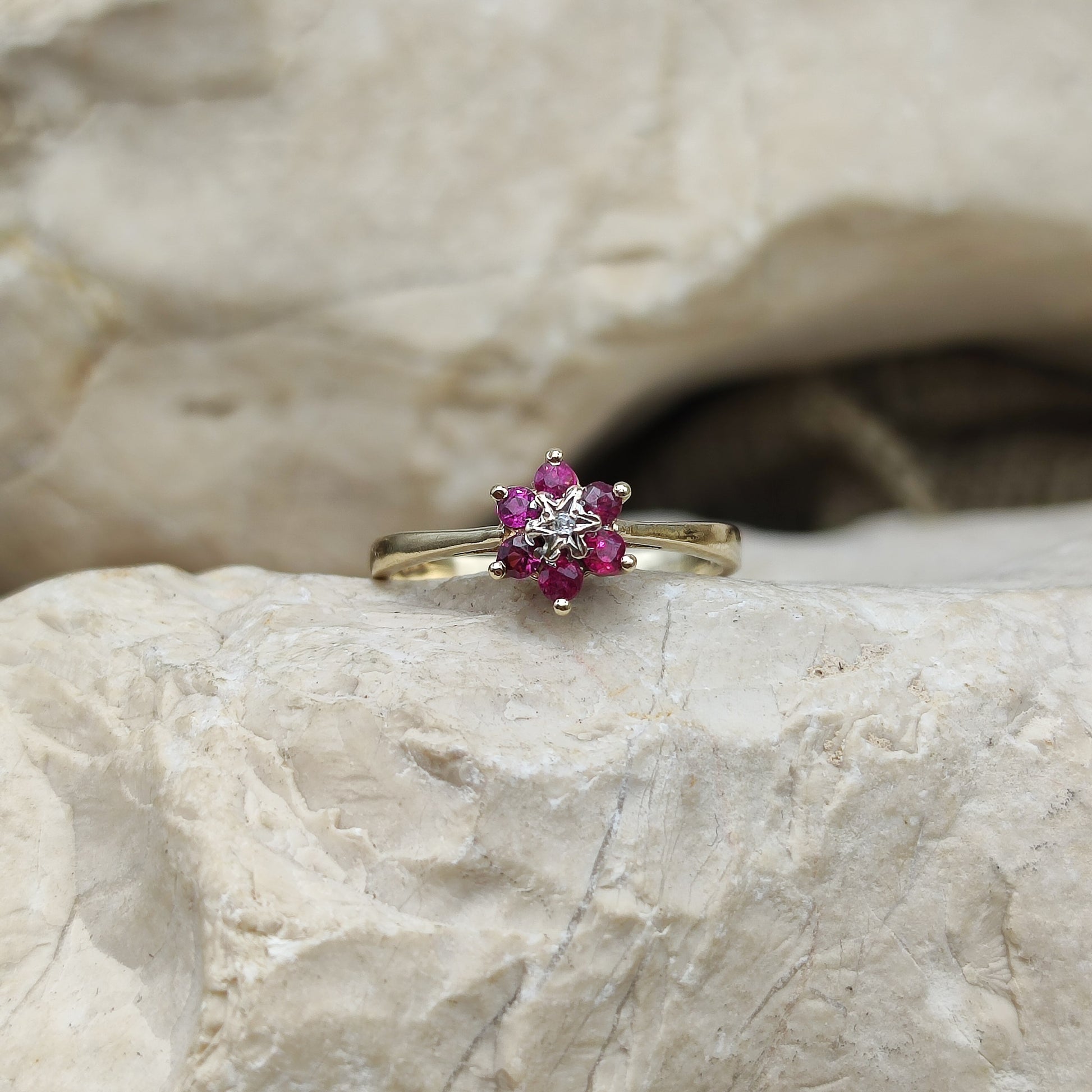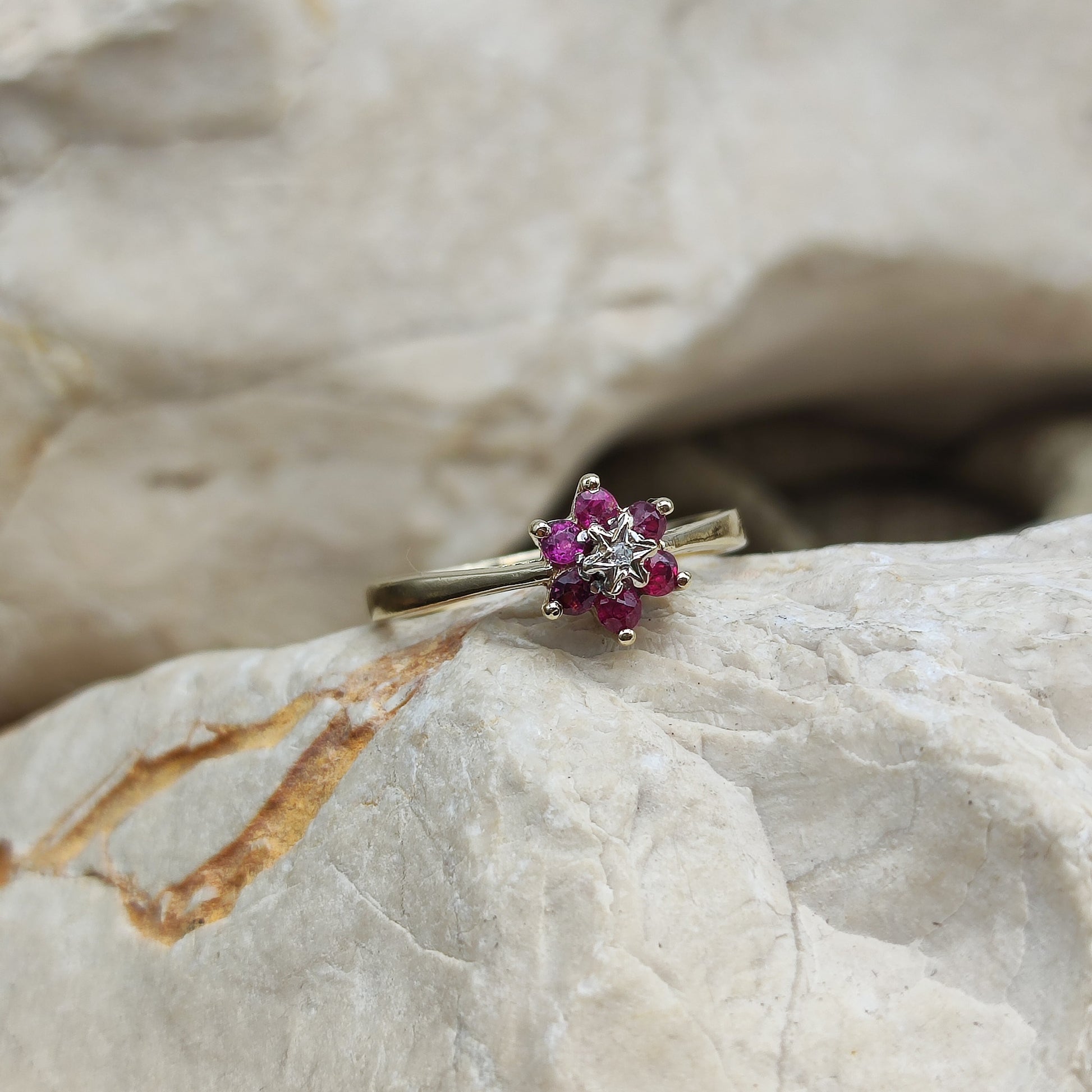 Vintage Ruby and diamond ring in 9K gold