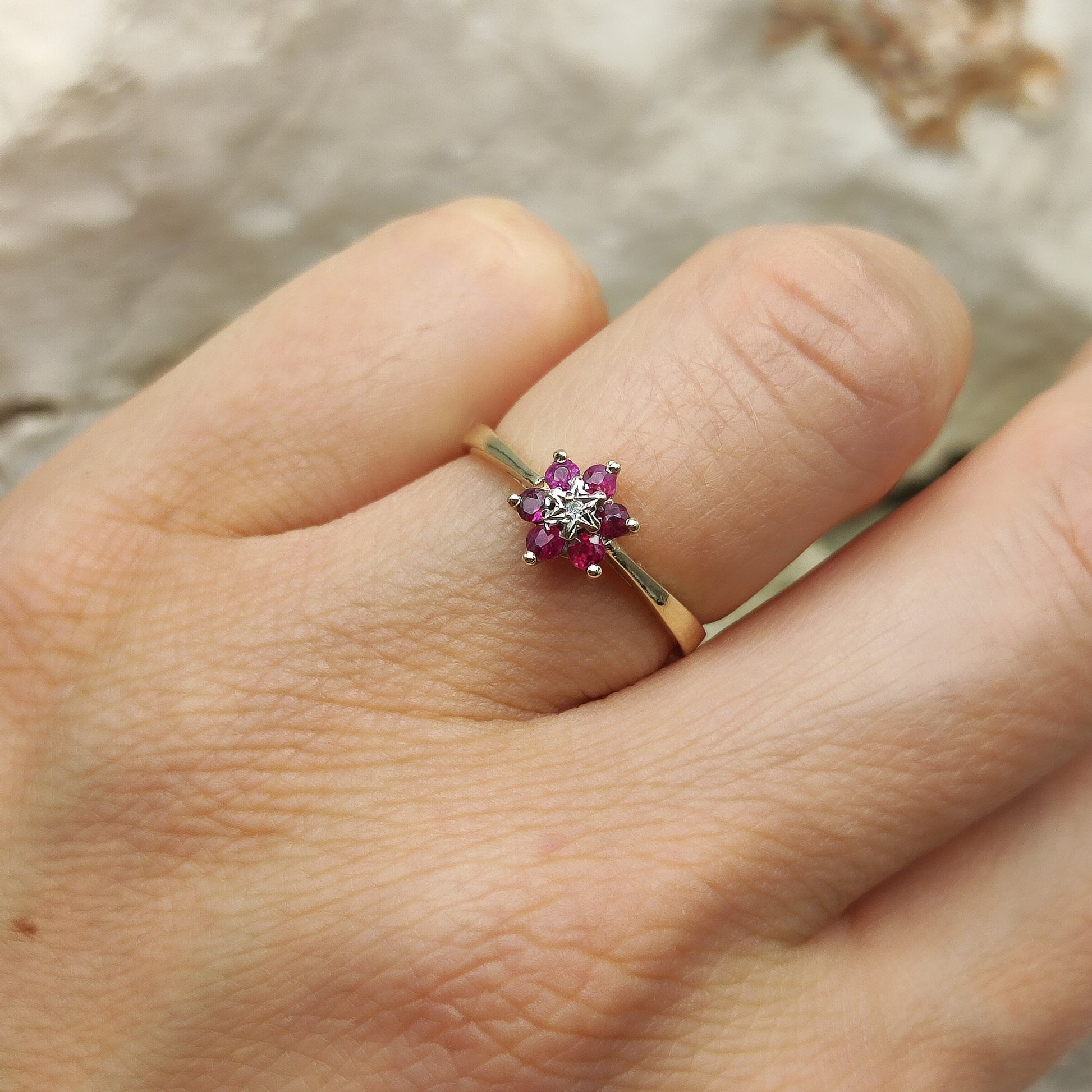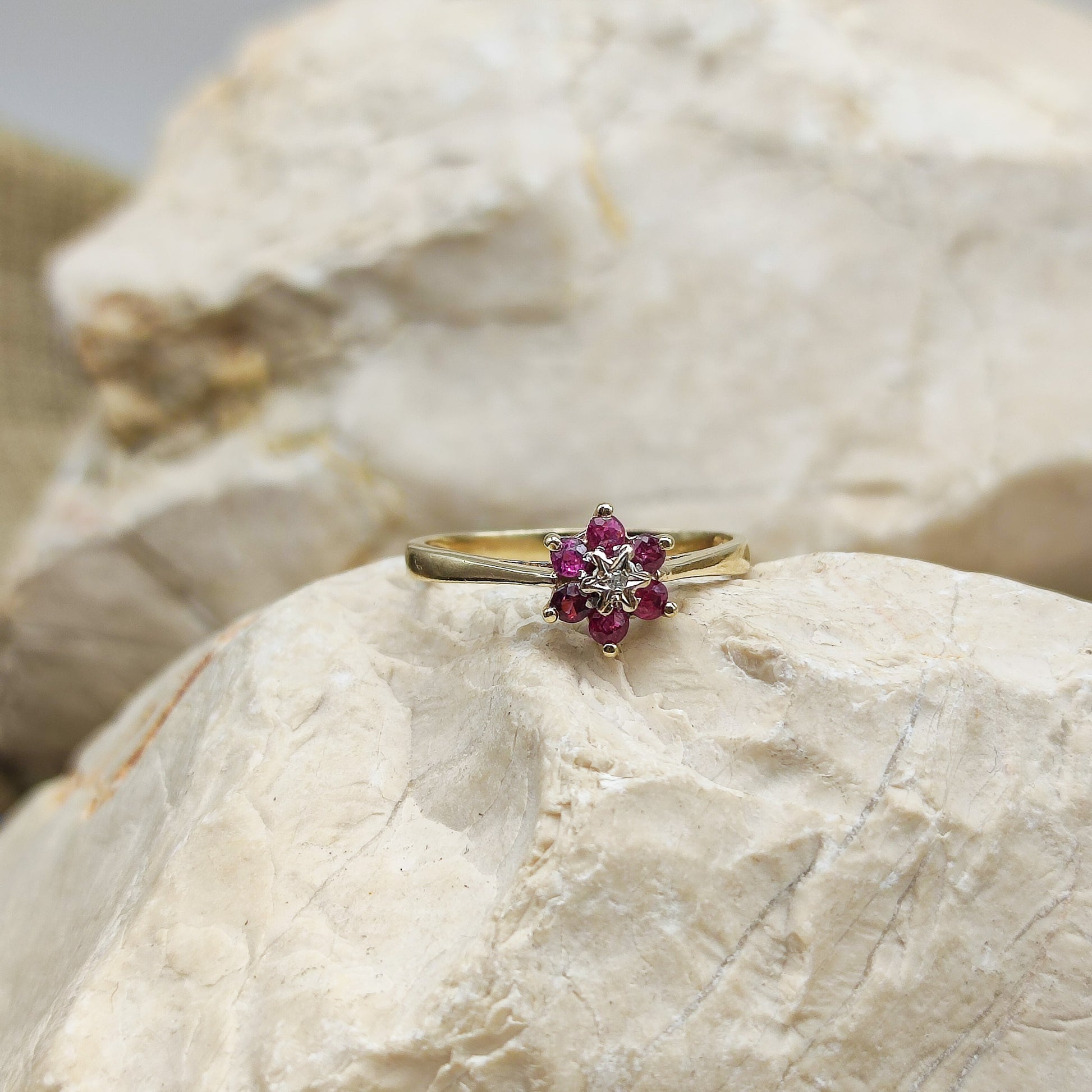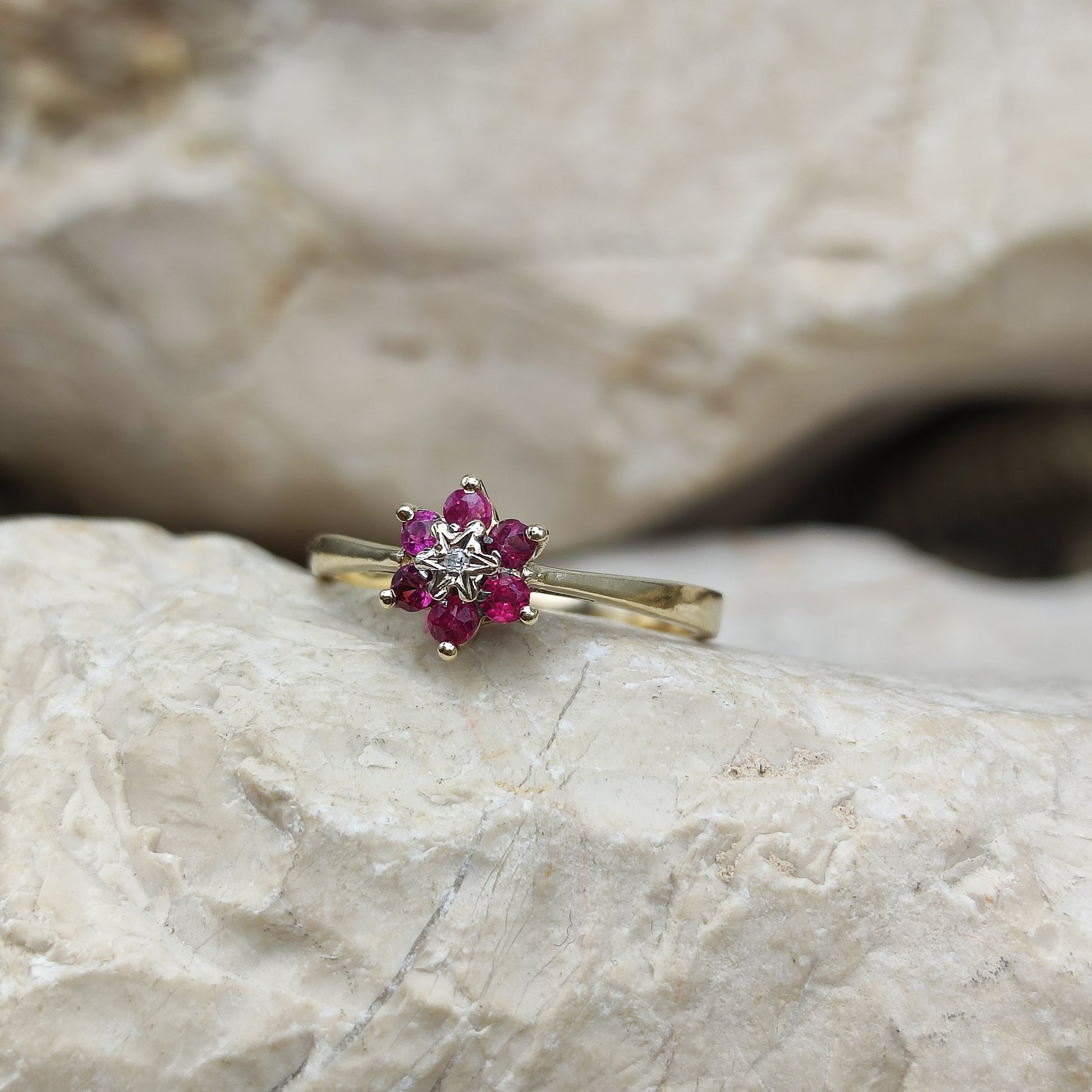 Vintage Ruby and diamond ring in 9K gold