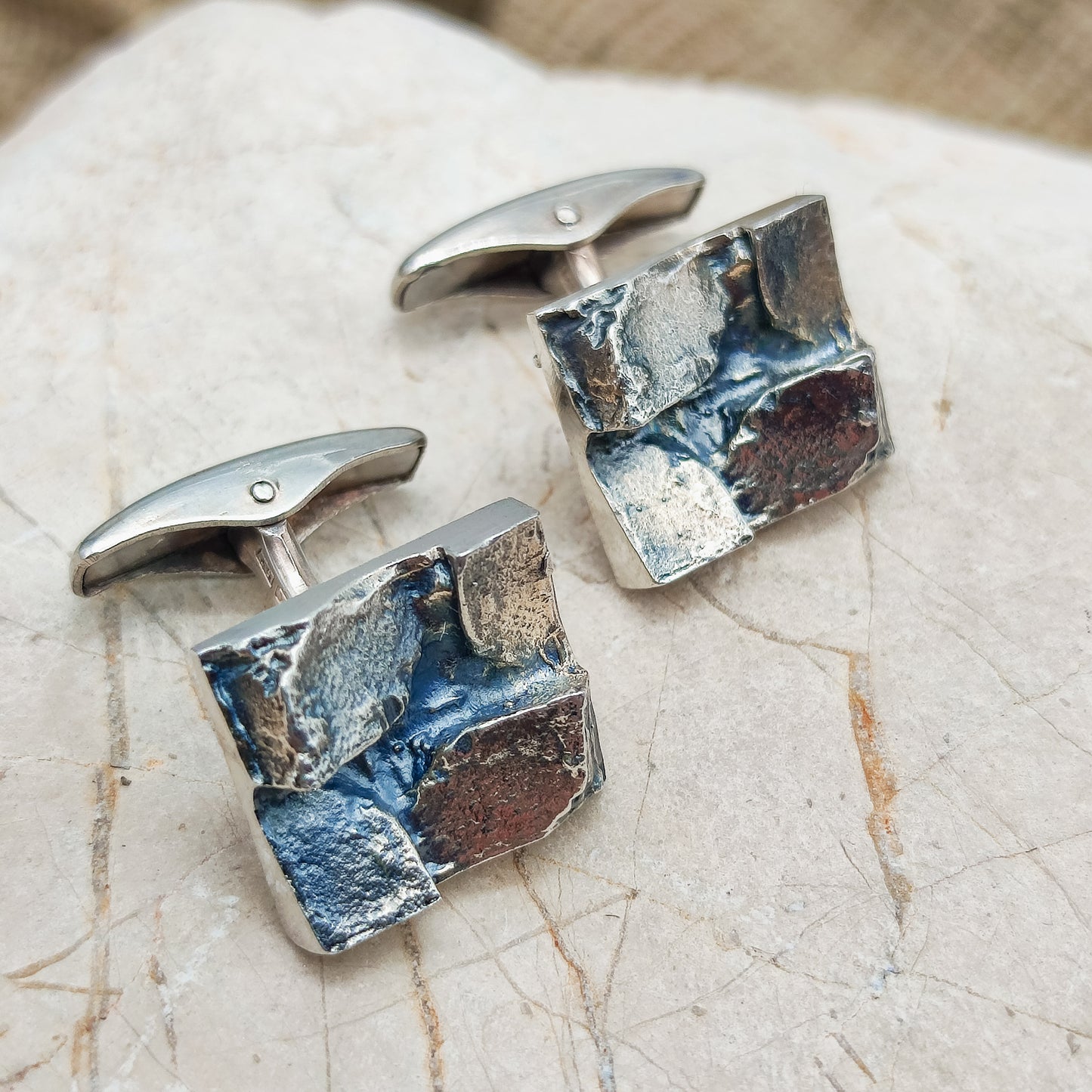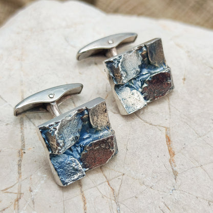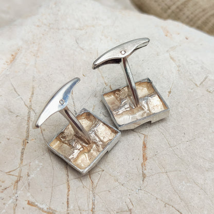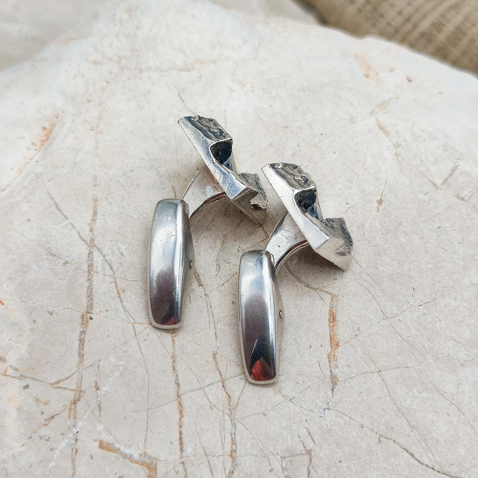 Vintage brutalistische manchetknopen in tweede gehalte zilver (830) uit 1969.