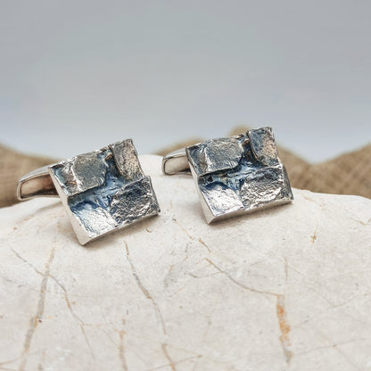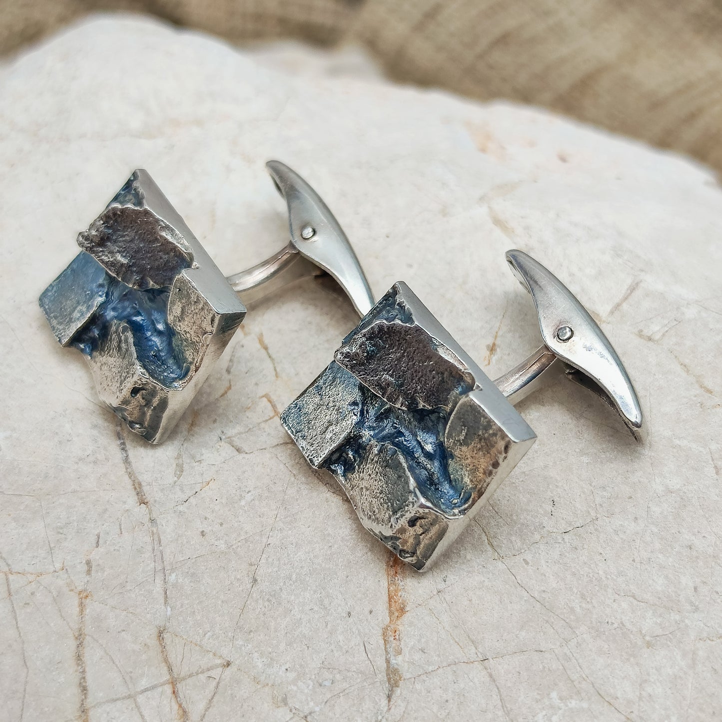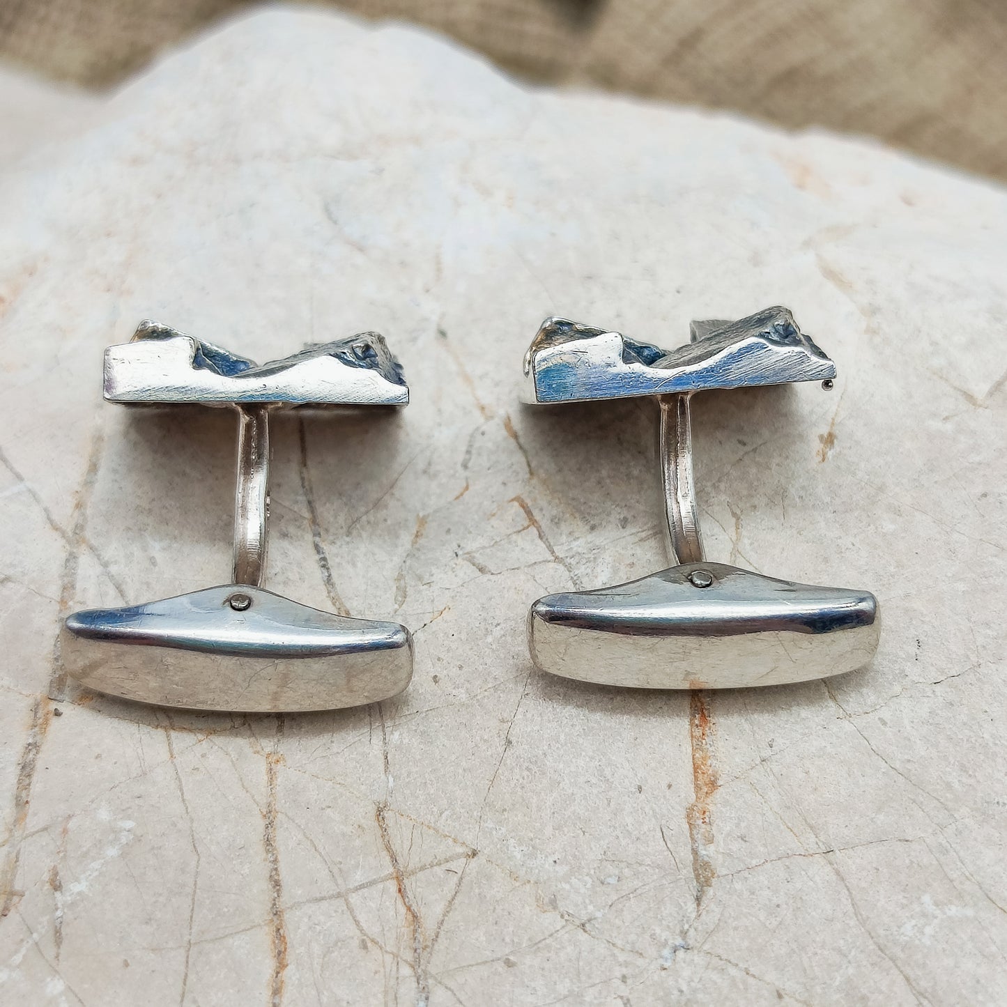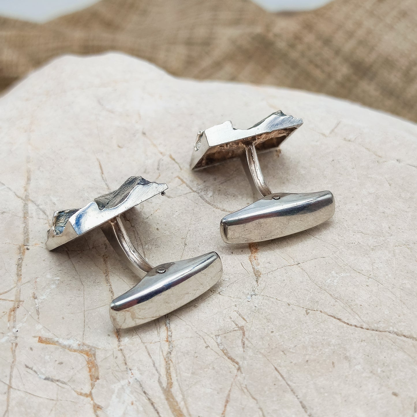 Vintage brutalistische manchetknopen in tweede gehalte zilver (830) uit 1969.