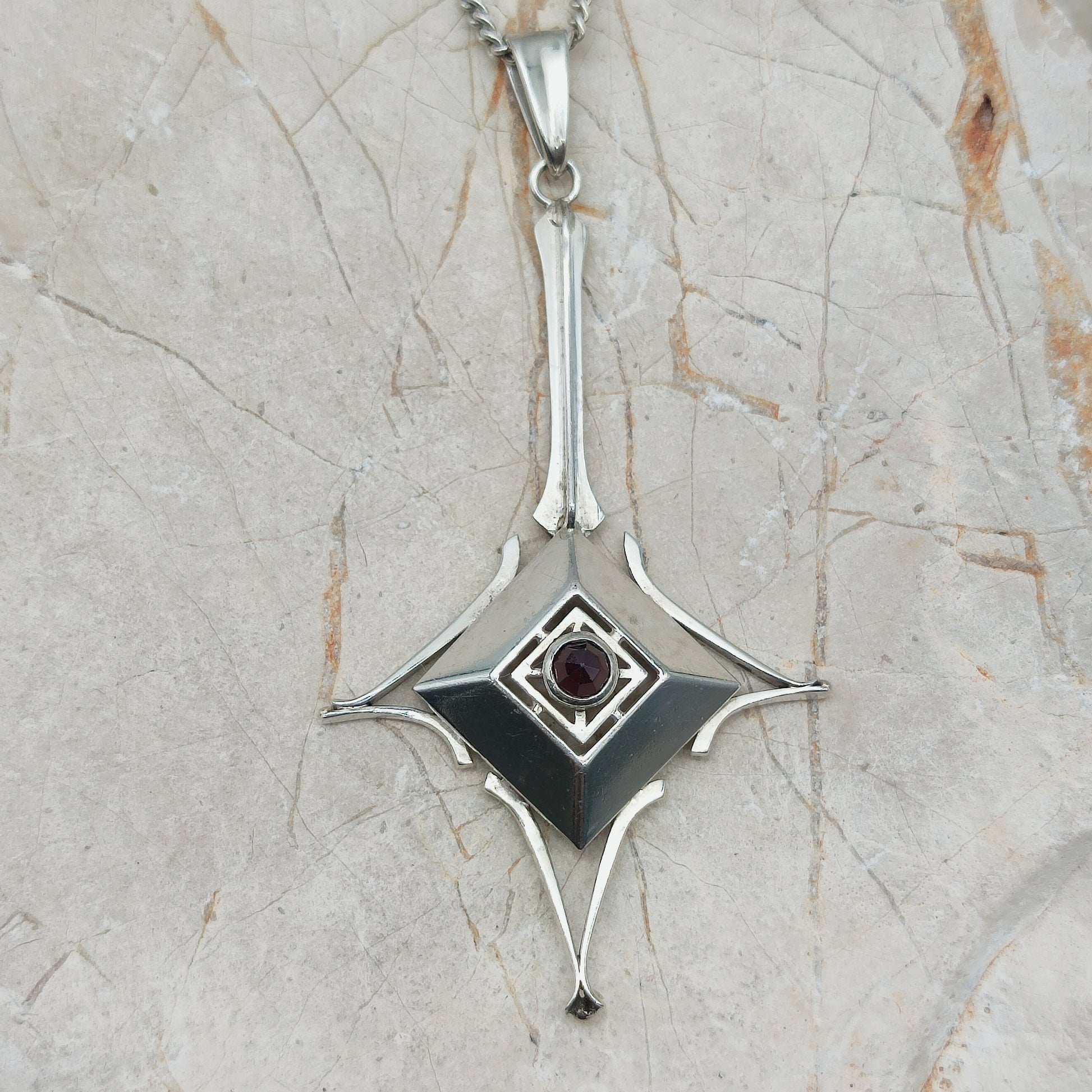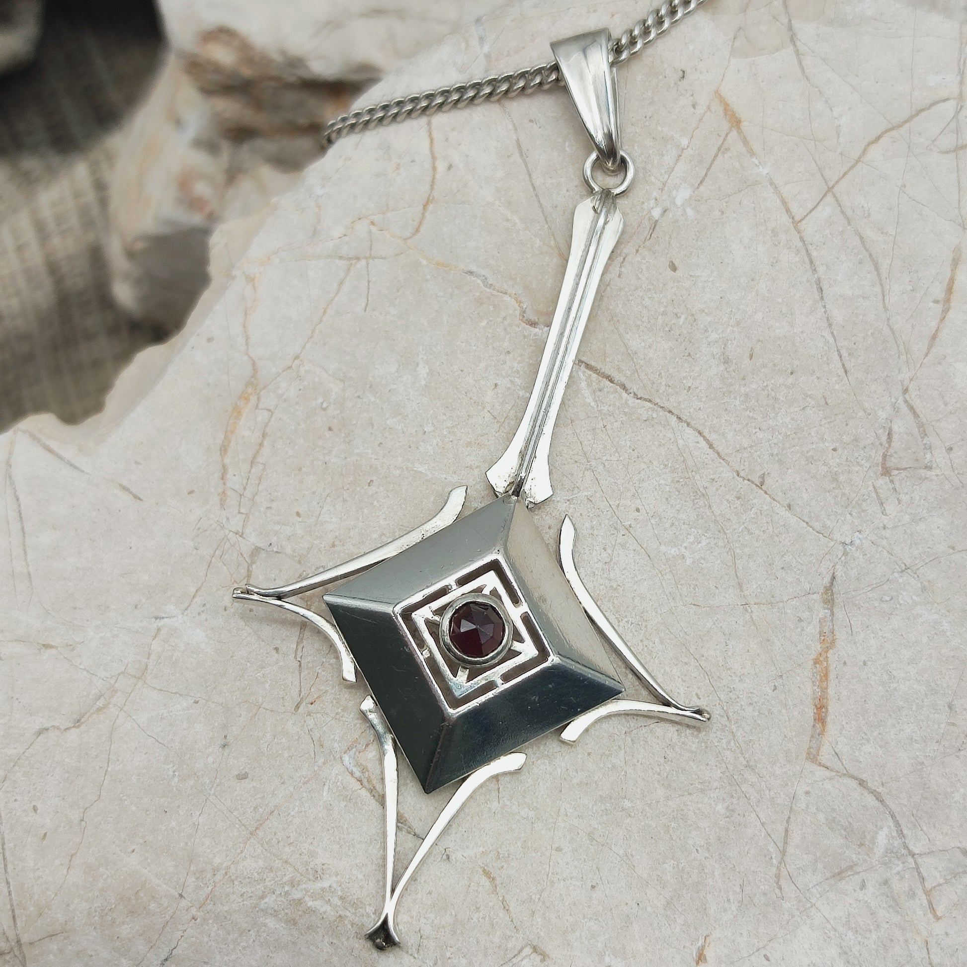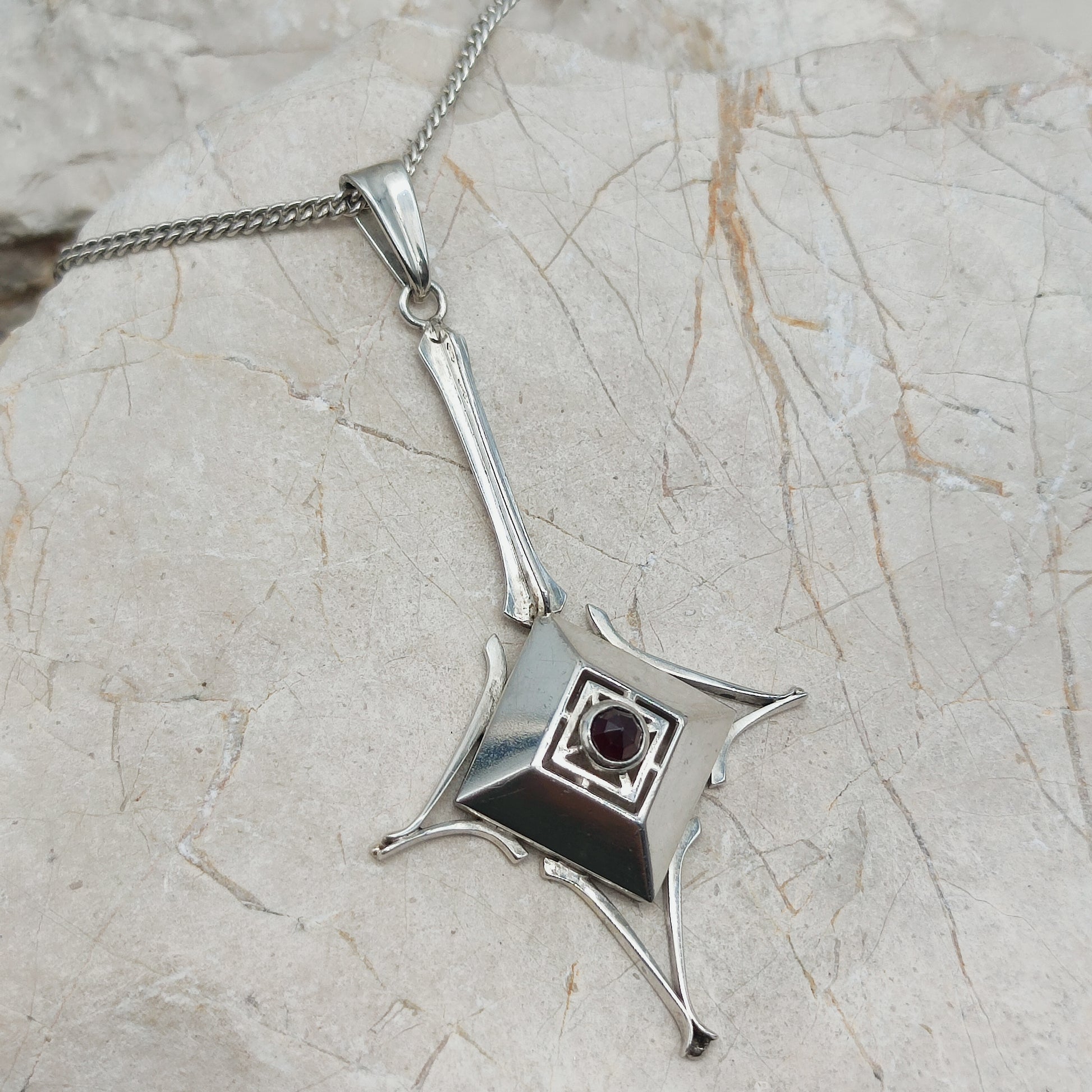 Dutch silver pendant with garnet Art Deco inspired 1970s