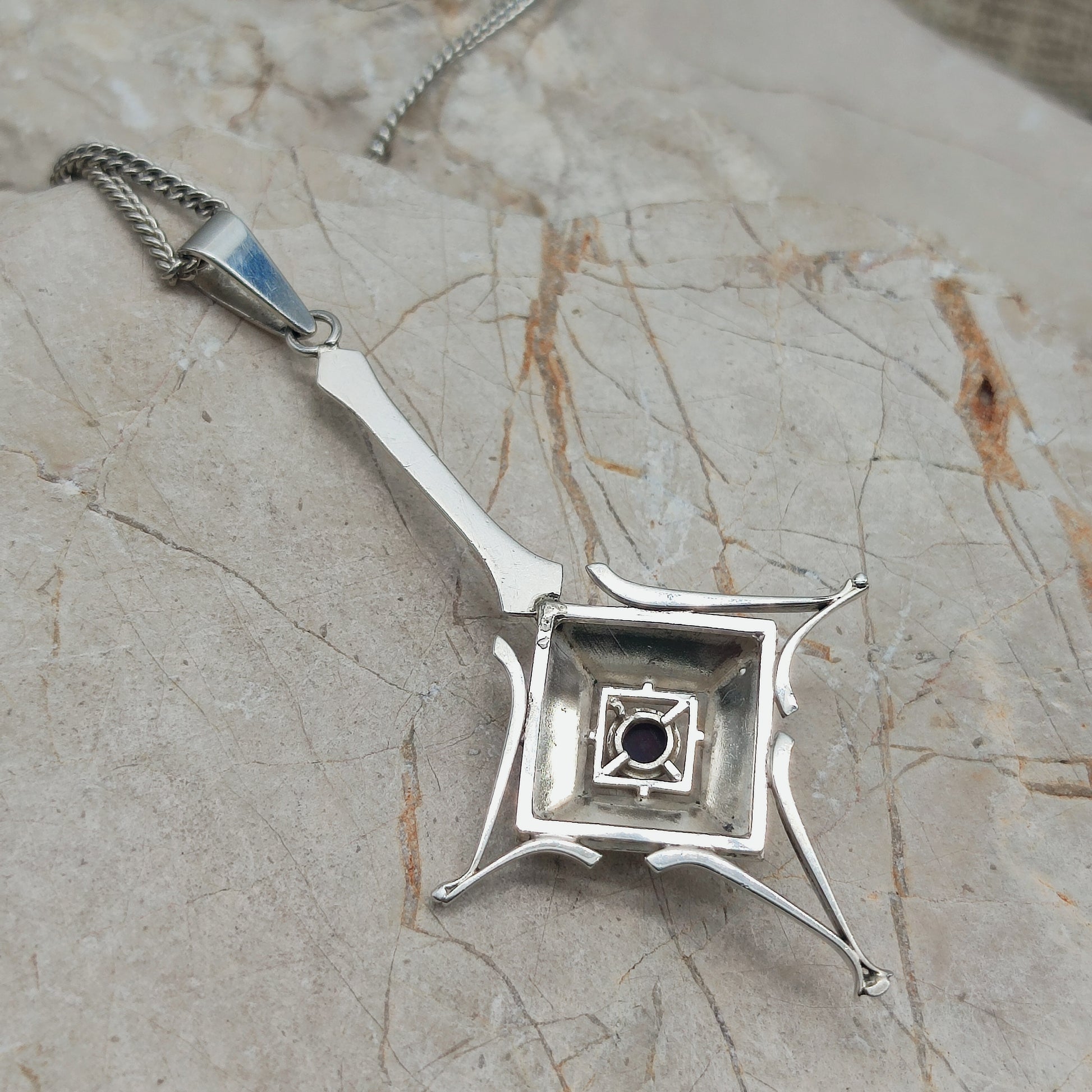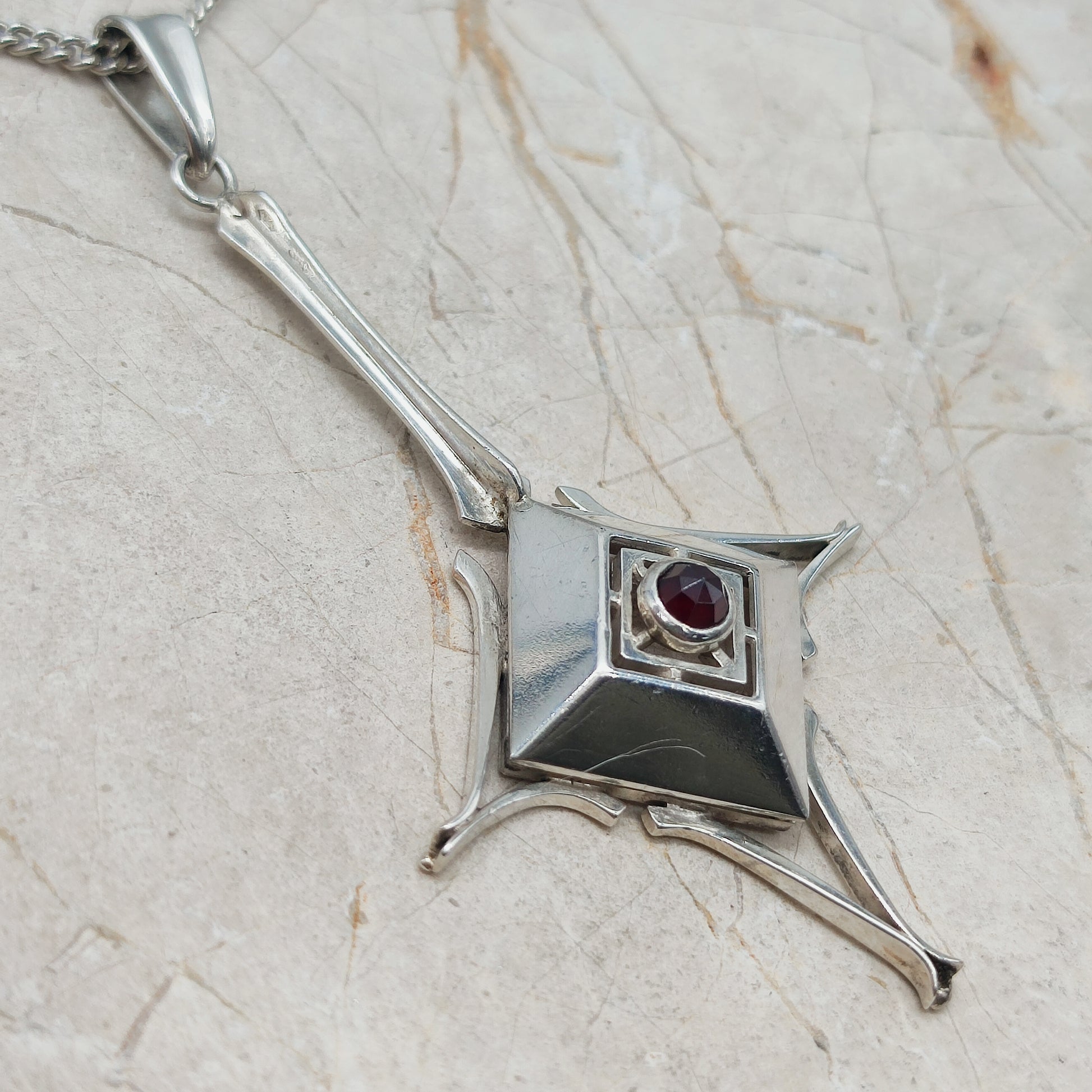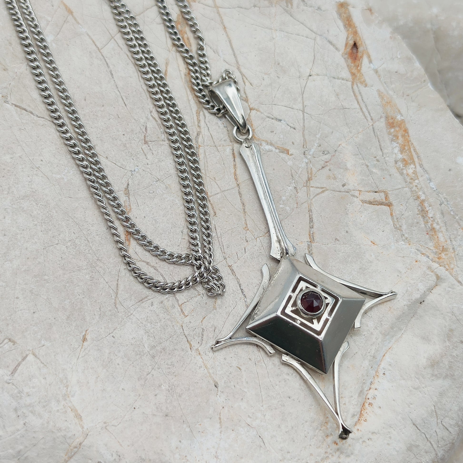 Dutch silver pendant with garnet Art Deco inspired 1970s
