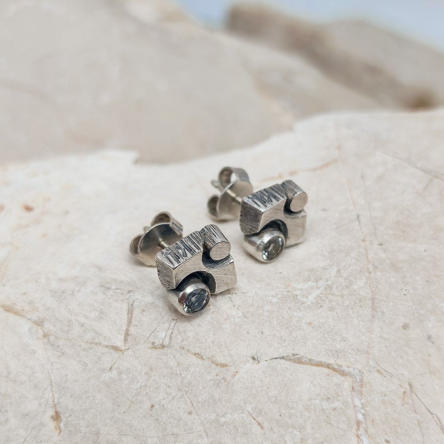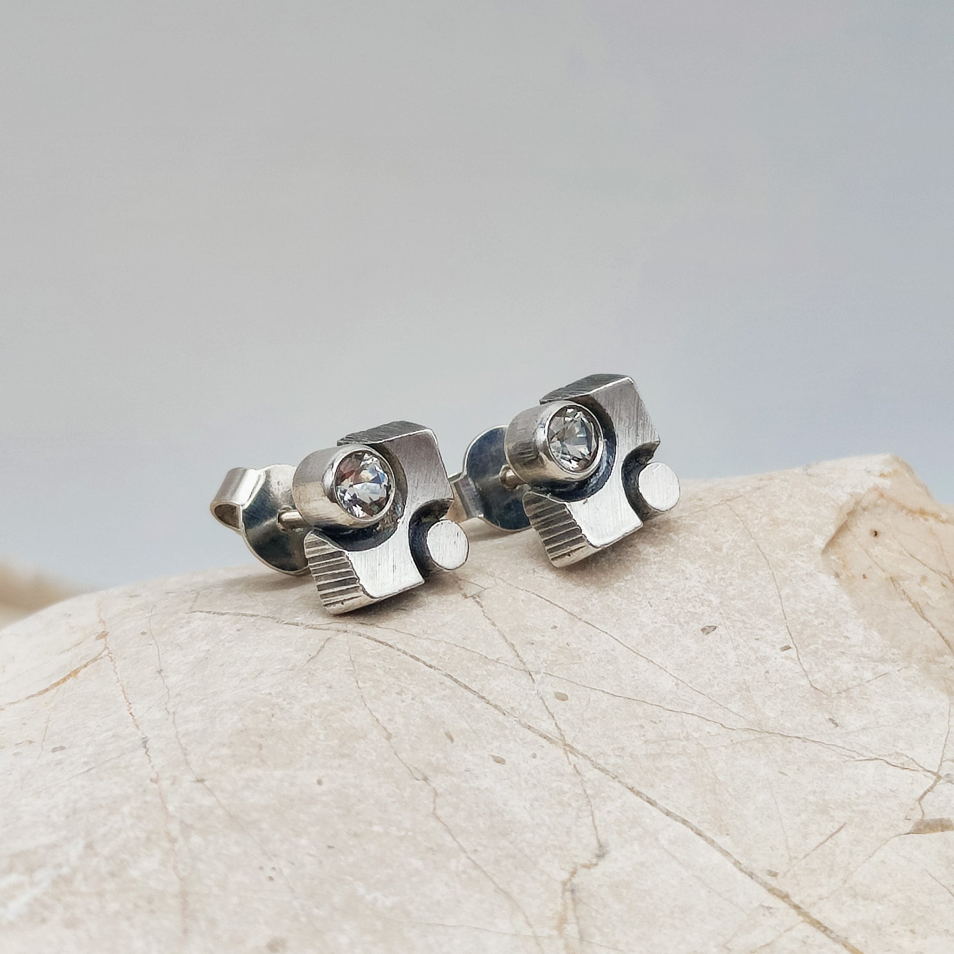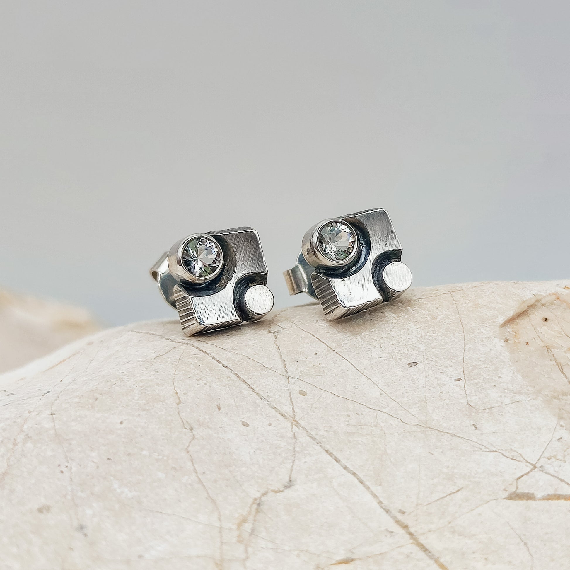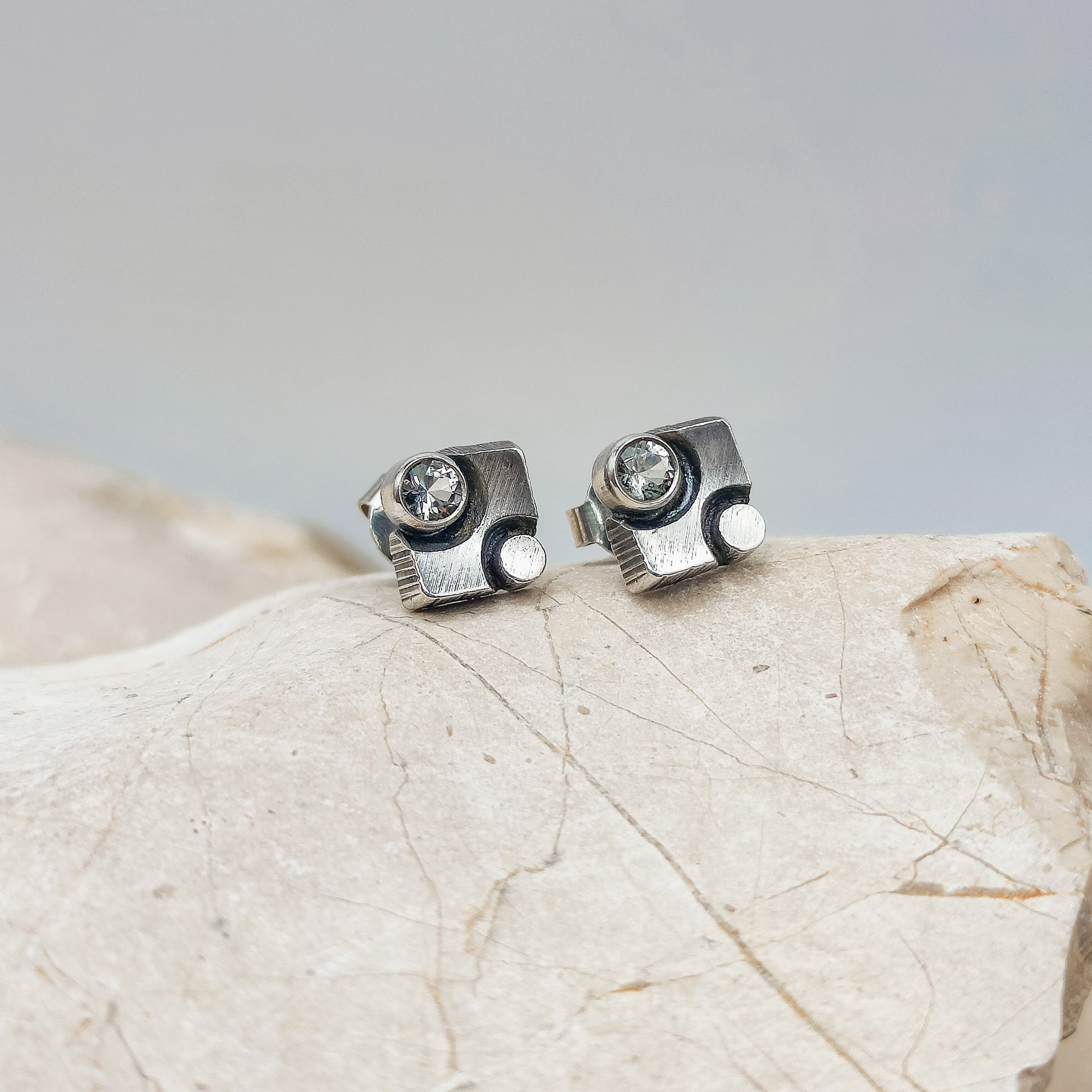 Deze studs hebben een vierkant ontwerp met 3 eilandjes waarvan 1 met een geslepen bergkristal van 3mm.