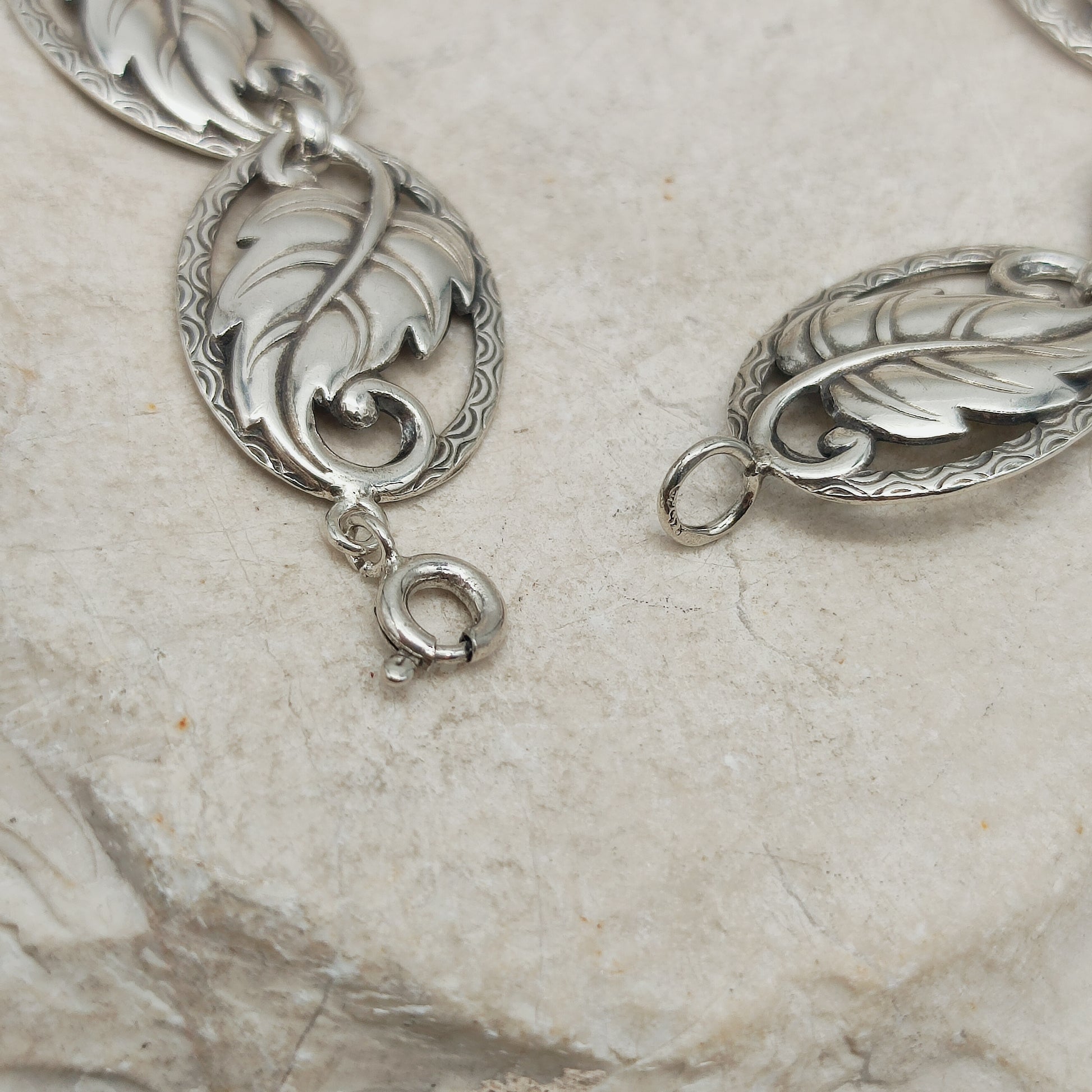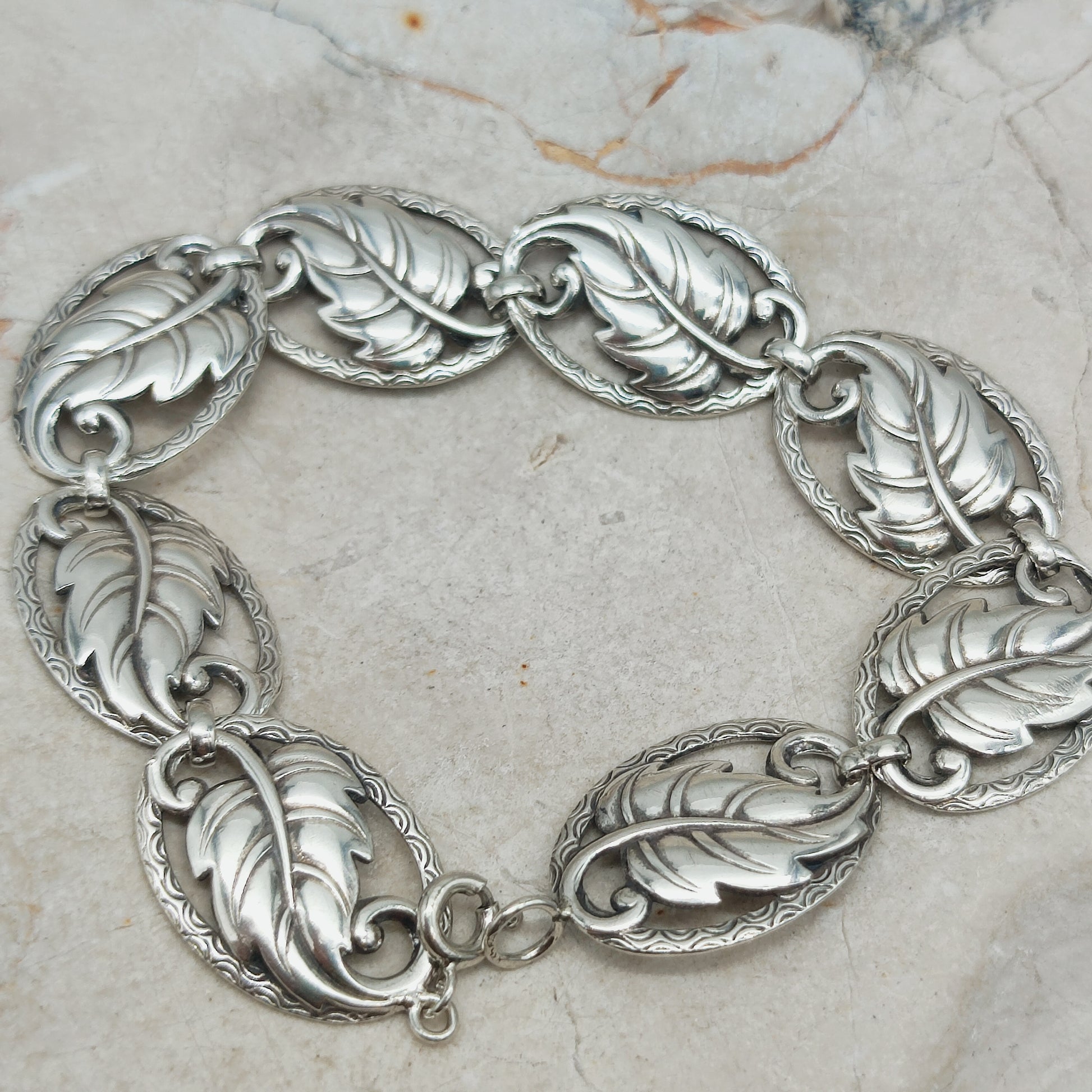 Vintage Art Deco Silver Bracelet with Leaf Panels