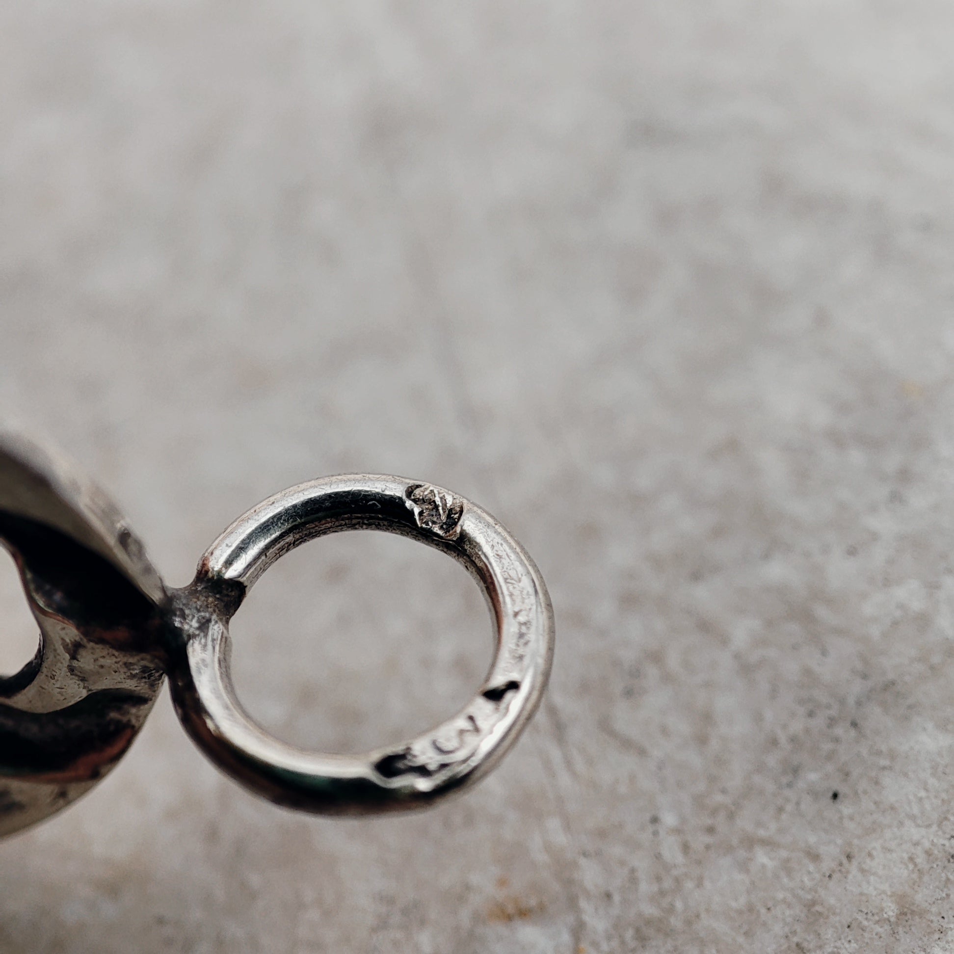 Aan de achterzijde vind je het 835-gehalte en het LN-stempel, dat gelinkt wordt aan de Laurin-markeringen uit de jaren 30. De armband draagt ook de gearceerde V, het Nederlandse invoerstempel dat tot en met 1953 werd gebruikt.